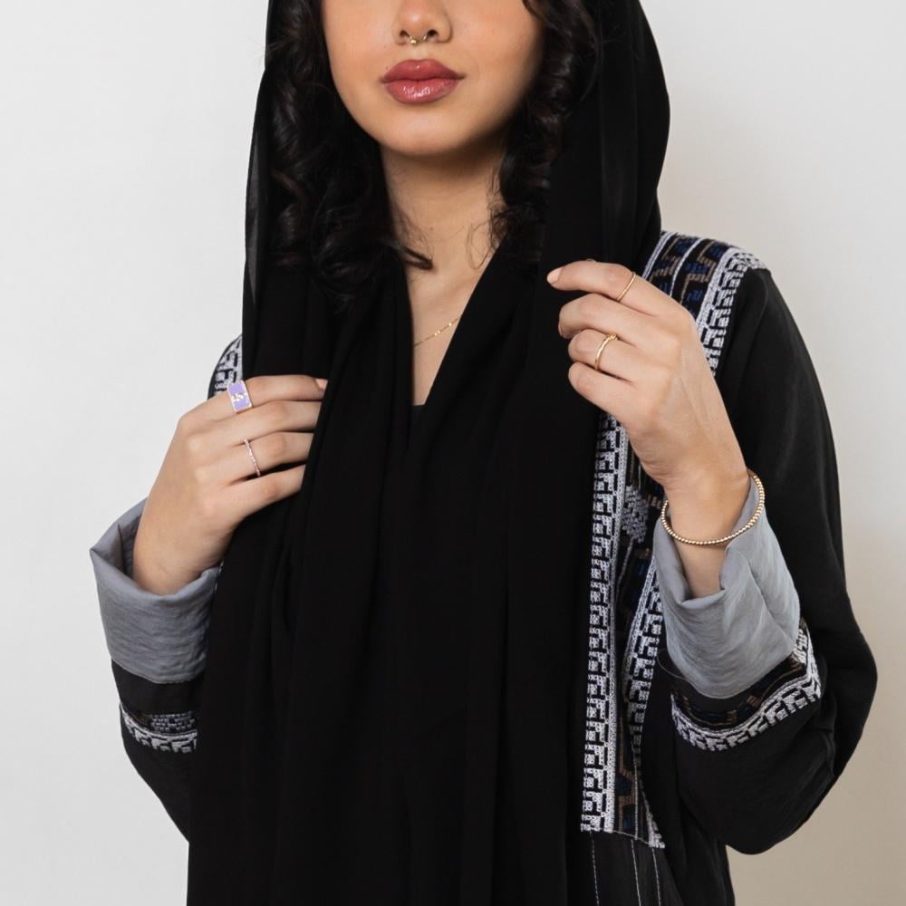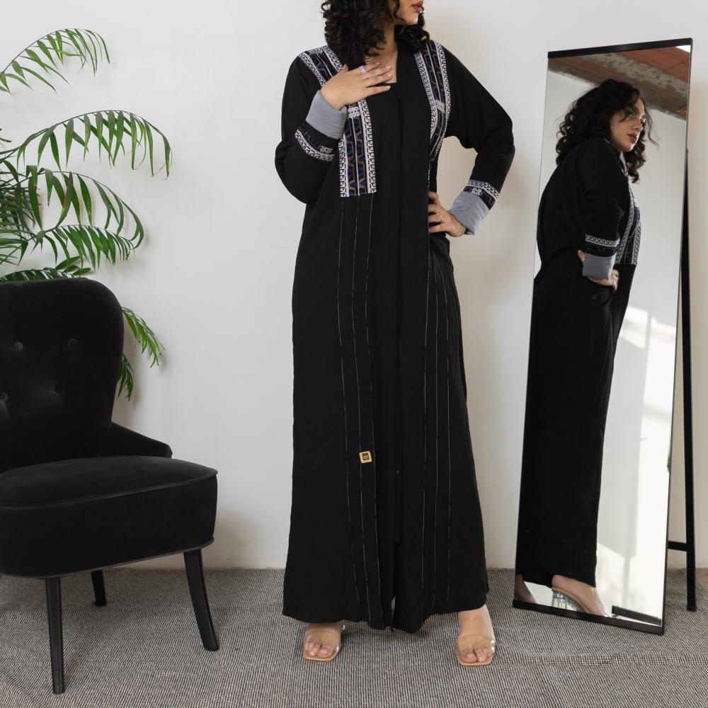 عباية فاخرة باللون الأسود مصنوعة من قماش الكريب الفاخر، بتطريز تراثي جميل يعكس جمال السدو السعودي الأصيل. تتميز هذه العباية بجودة عالية ومناسبة للعمل والدوام، حيث تمنحك إطلالة راقية وعملية في نفس الوقت. القماش يتميز بخامته التي لا تحتاج إلى الكوي، مما يجعلها الخيار الأمثل للمرأة العصرية التي تبحث عن الأناقة والراحة معًا.