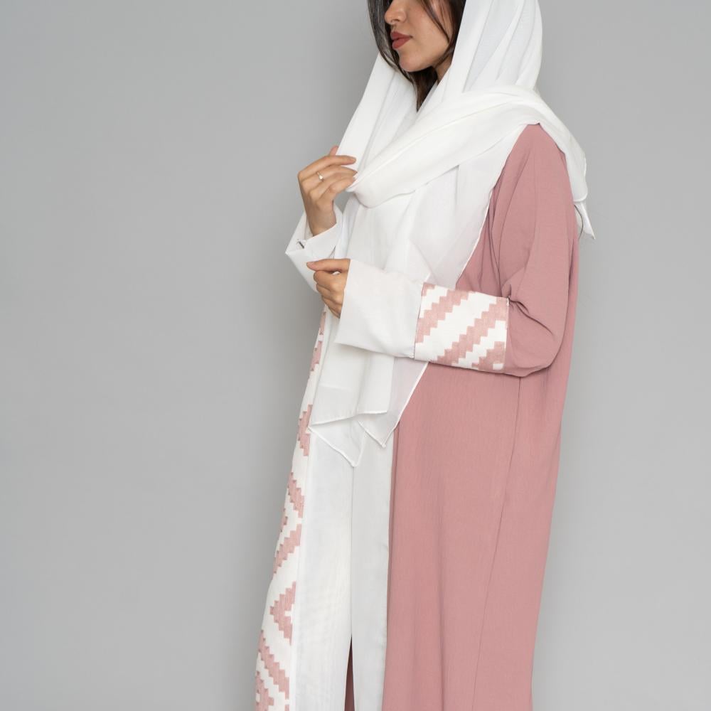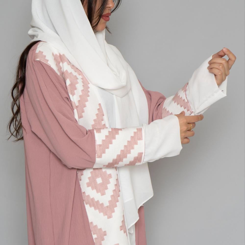 عباية ملونة بتصميم عصري وجذاب تجمع بتناغم رائع بين اللونين اللحمي والأبيض، لتضفي مزيدًا من الرونق والأناقة على إطلالتك. صُممت هذه العباية لتكون مثالية للاستخدام اليومي وكذلك لمناسباتك الخاصة والعامة، حيث تجمع بين العملية والفخامة. تتميز بكلف بلون لحمي وأبيض مع تفاصيل شيفون على الجهتين، وتطريزات أنيقة على الأكمام لإضفاء لمسة فاخرة.