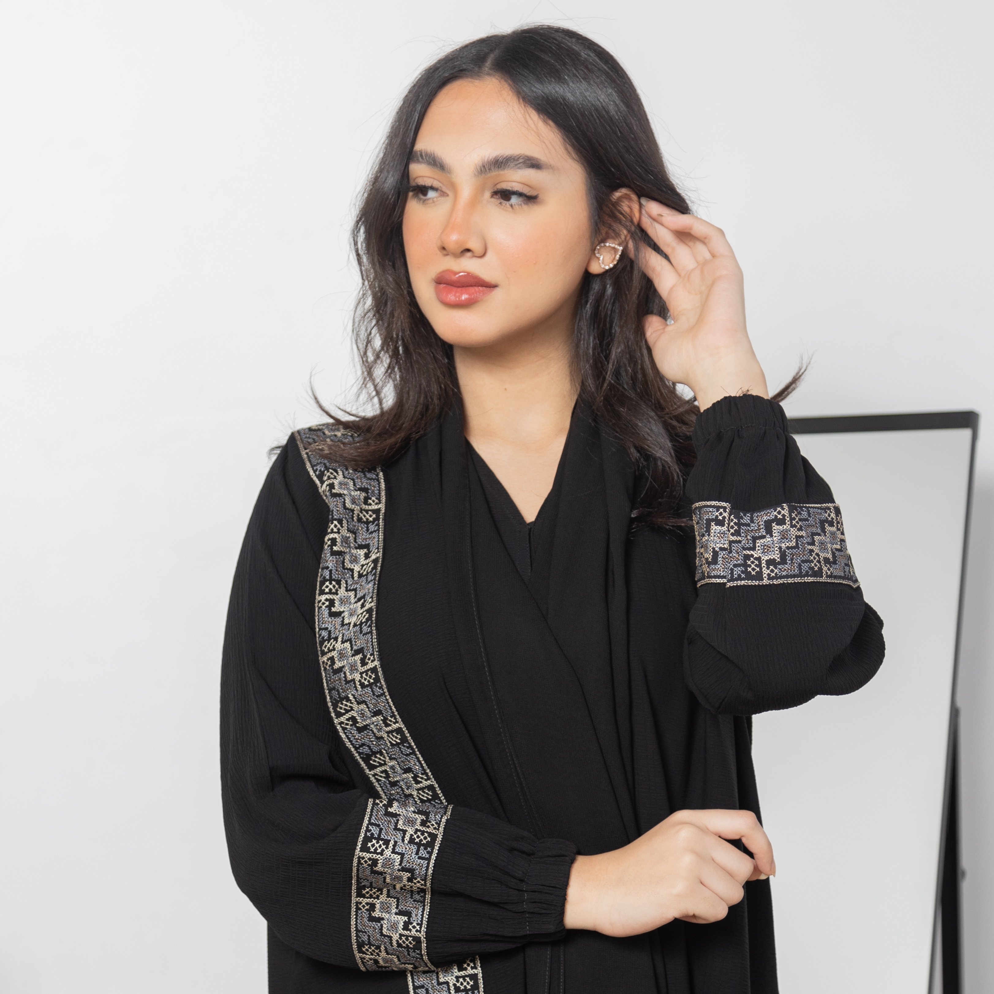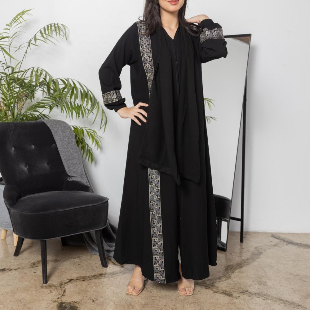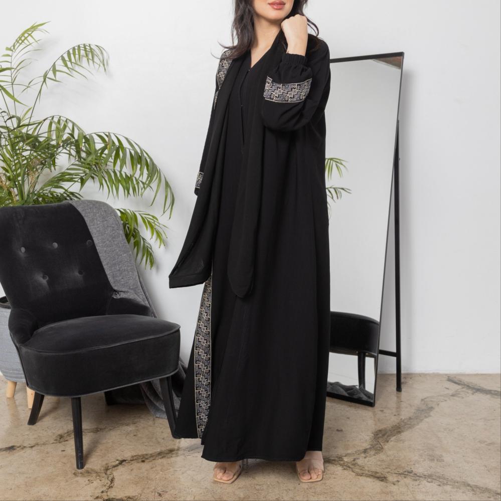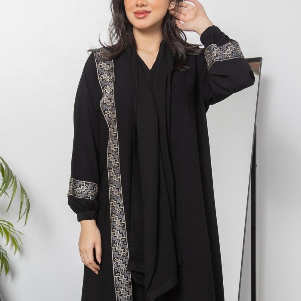 Black abaya with an Arabic style, with the addition of the cost of the Sadu